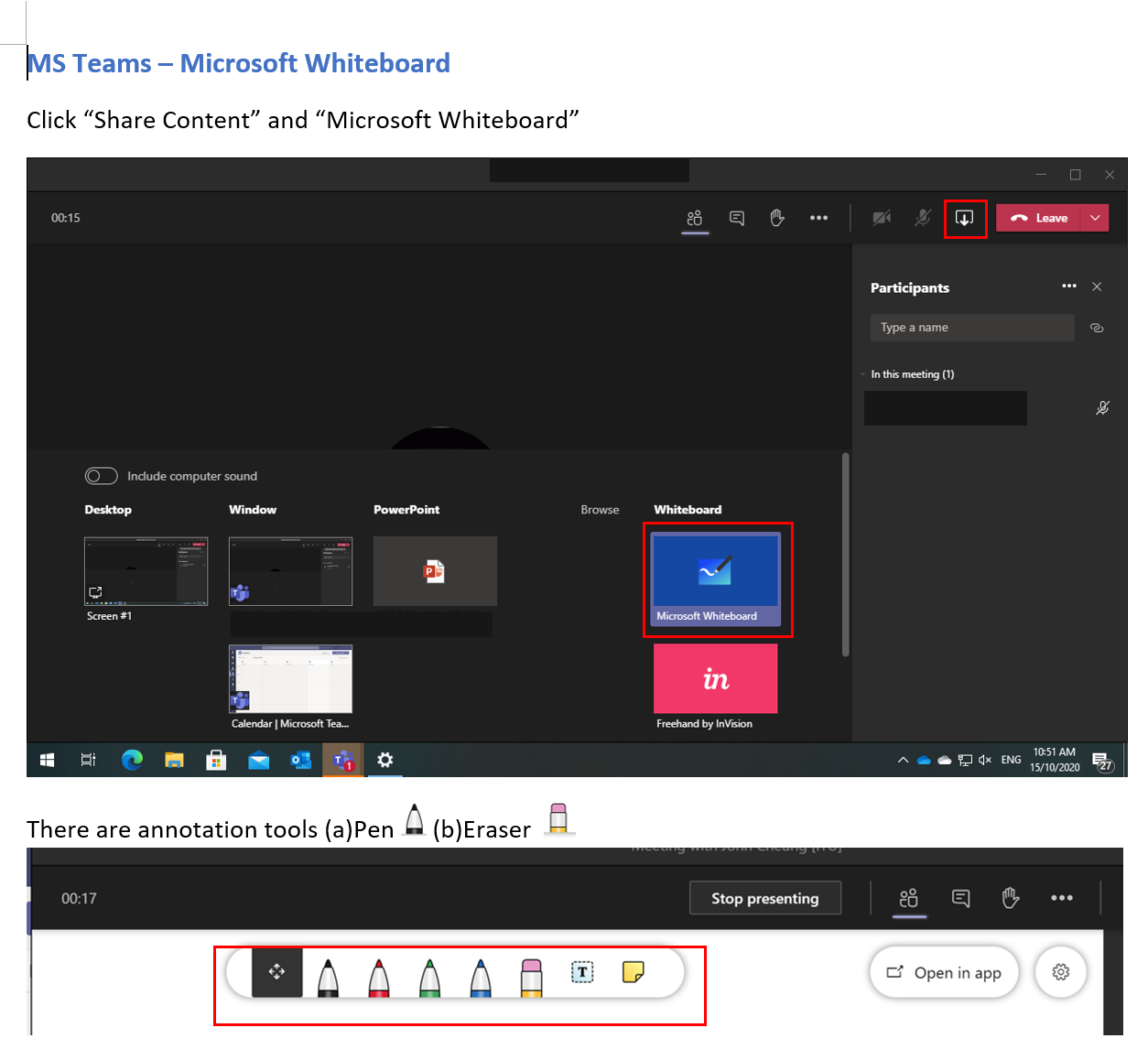 Use of Writing Tablet with MS Teams Whiteboard