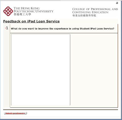 To collect your feedback regarding iPad loan service, an online feedback form and its link are available in student iPad, please let us know your feedback!