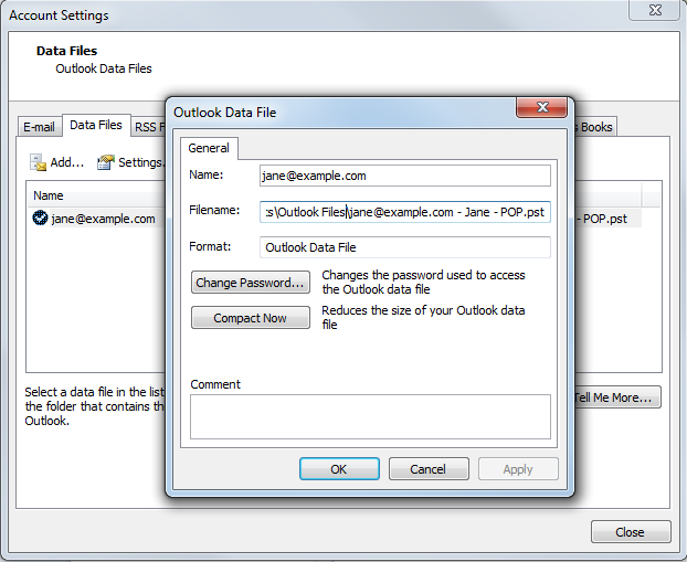 - Select your PST file in the list, and then click on Settings.